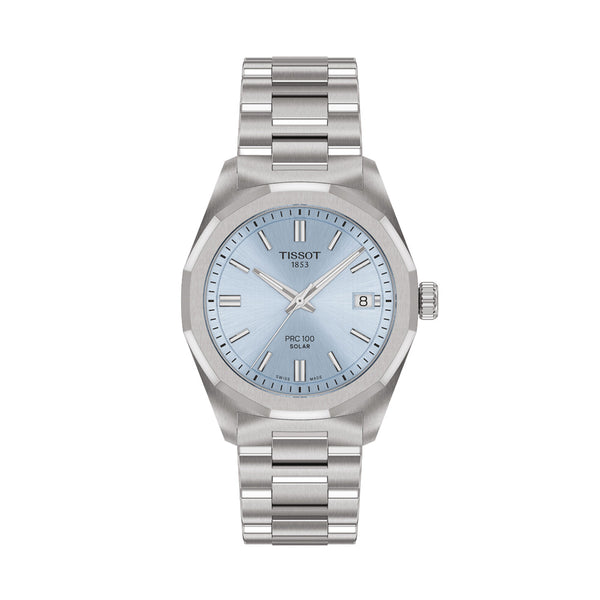 Edelstahlgehäuse 34mmPerlmutt-Zifferblattkratzfestes SafirglasSolar-Quarzwerk Die PRC 100 Solar Kollektion von Tissot verbindet Schweizer Präzision mit modernem Design. Angetrieben von der Lightmaster Solar-Technologie, nutzen diese stilvollen Zeitmesser natürliches und künstliches Licht für...